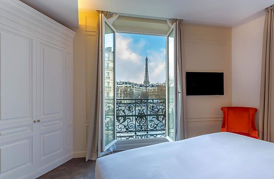 With an Eiffel Tower side view, this room has a flat-screen TV, a seating area as well as soundproofing and mini-bar. The private bathroom comes with a bath or a shower.